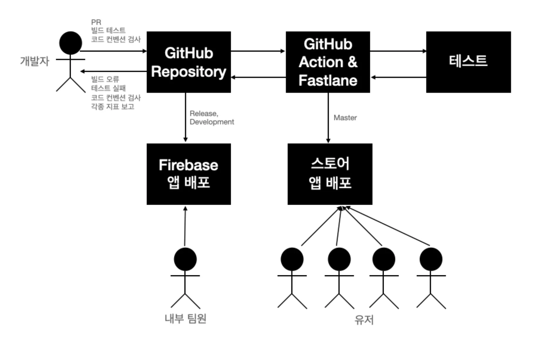 오늘학교는 Flutter로 개발하는 크로스 플랫폼 앱으로 내부 배포와 테스트 배포를 양 플랫폼으로 하는 경우, 배포에 드는 시간이 매우 큽니다. 그래서 우리는 Fastlane과 Github Action으로 배포 파이프라인을 구성하여 사용하고 있습니다.