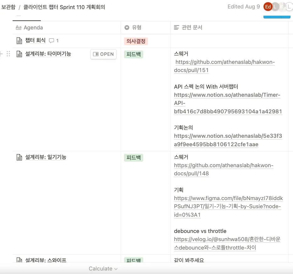 한 스프린트에 한 번씩 정기적으로 모여 챕터 어젠다 논의와 설계 리뷰 등을 진행합니다.