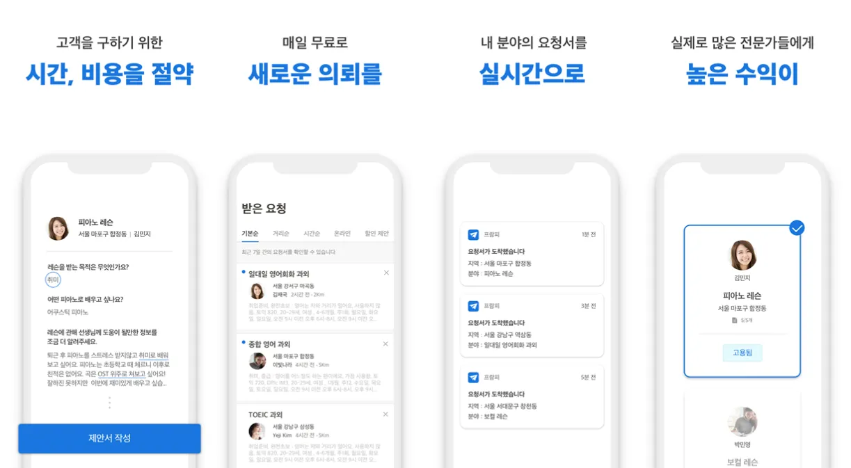 중개 절차 간소화: 요청서 내용을 바탕으로 전문가들의 제안 수령 후 마음에 드는 전문가와 직접 연락