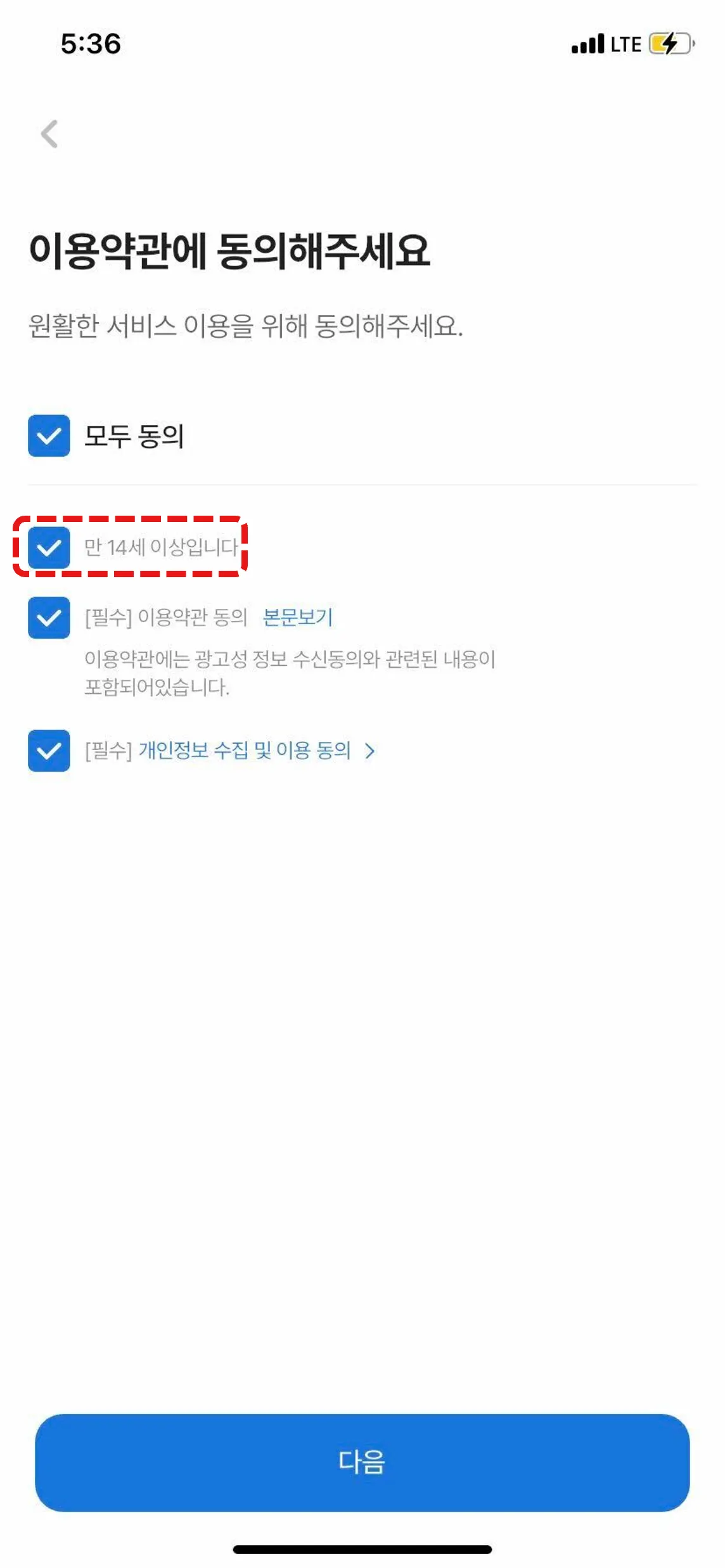 회원가입 시 이용약관 페이지에서 아래 이미지처럼 [필수] 항목만 클릭하기