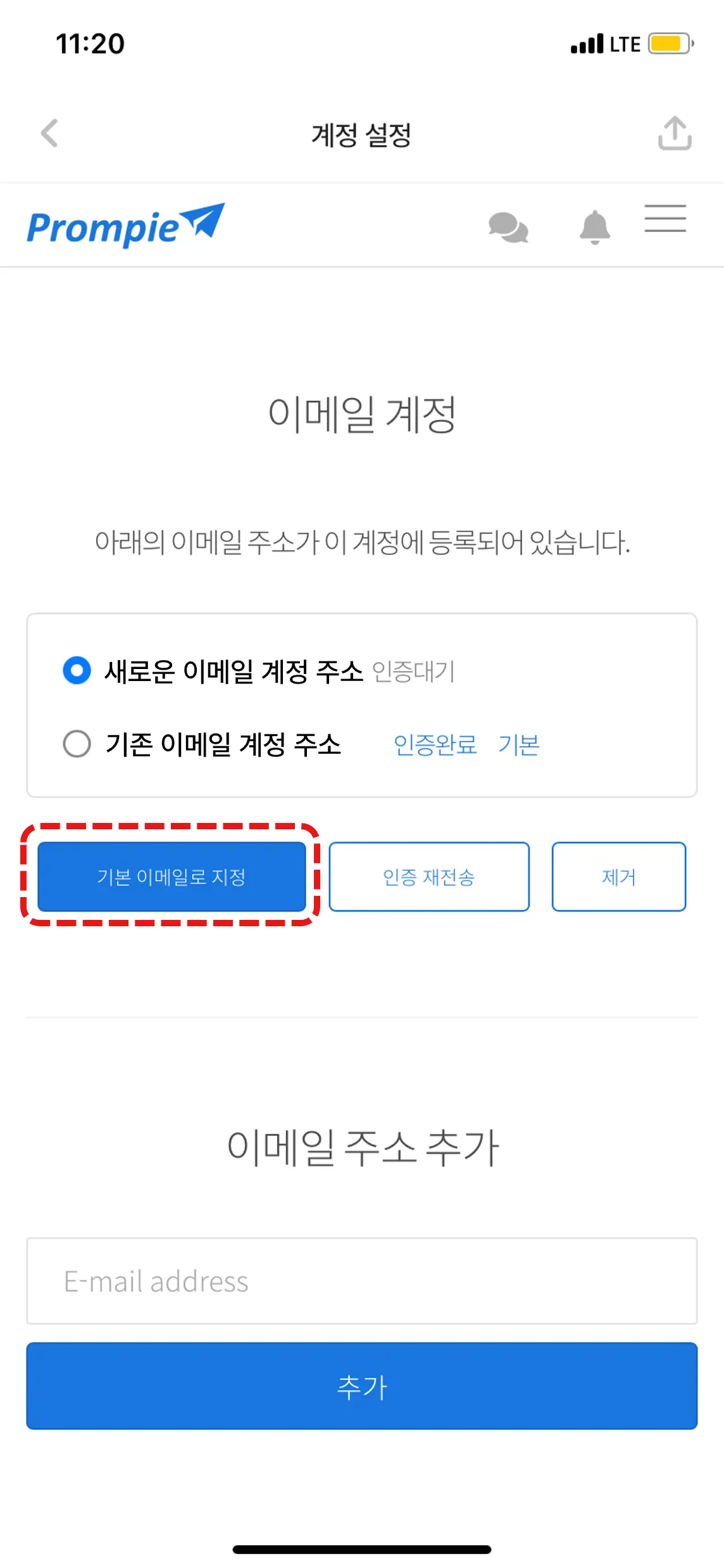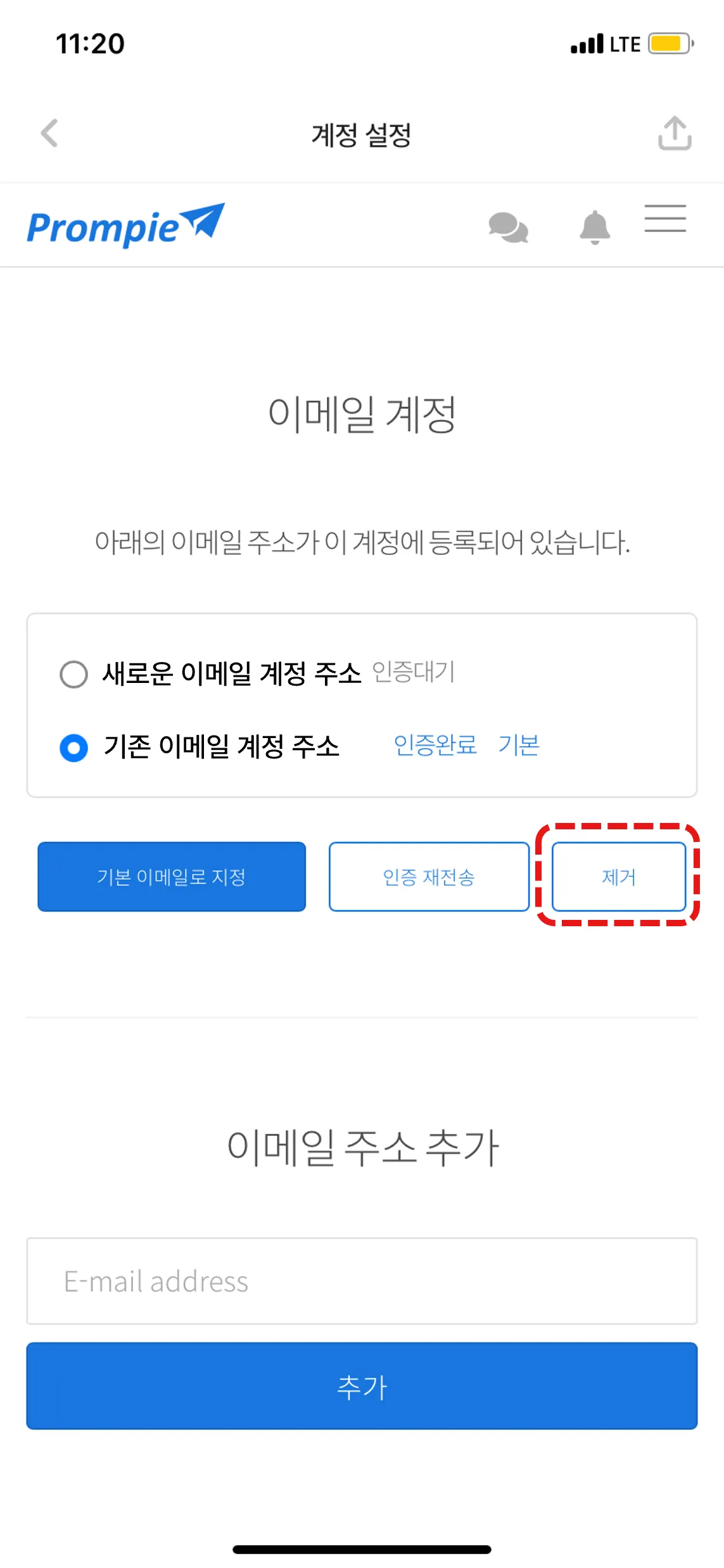 새로운 이메일 계정으로의 변경은 [로그인] 이후 가능해요